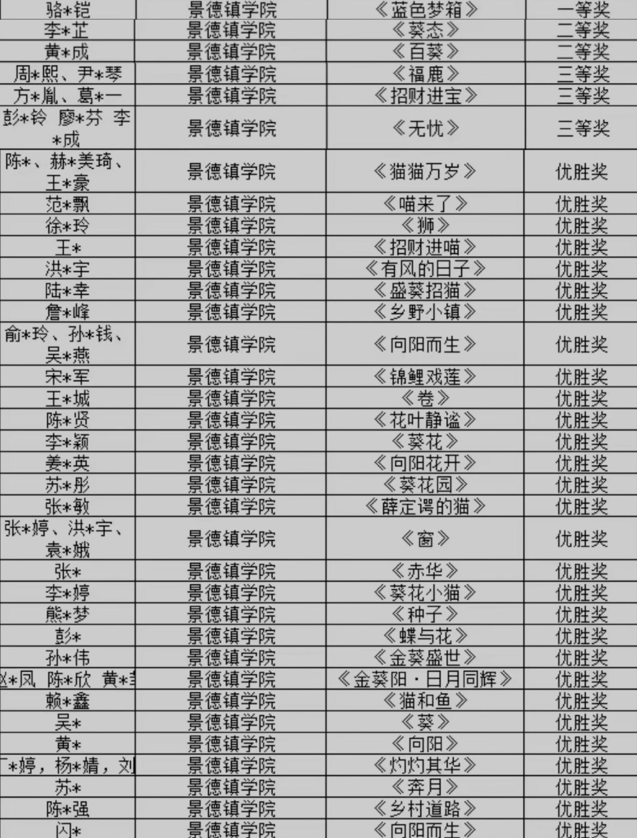 (本网讯:王思怡)近日,第八届“金葵花杯”中国(景德镇)原创陶瓷艺术大赛颁奖仪式暨获奖作品展在三宝国际文创中心举行。经过激烈的初评、复评,我校学生在高校组“小招喵奖”中,斩获一等奖1名、二等奖2名、三等奖3名、...