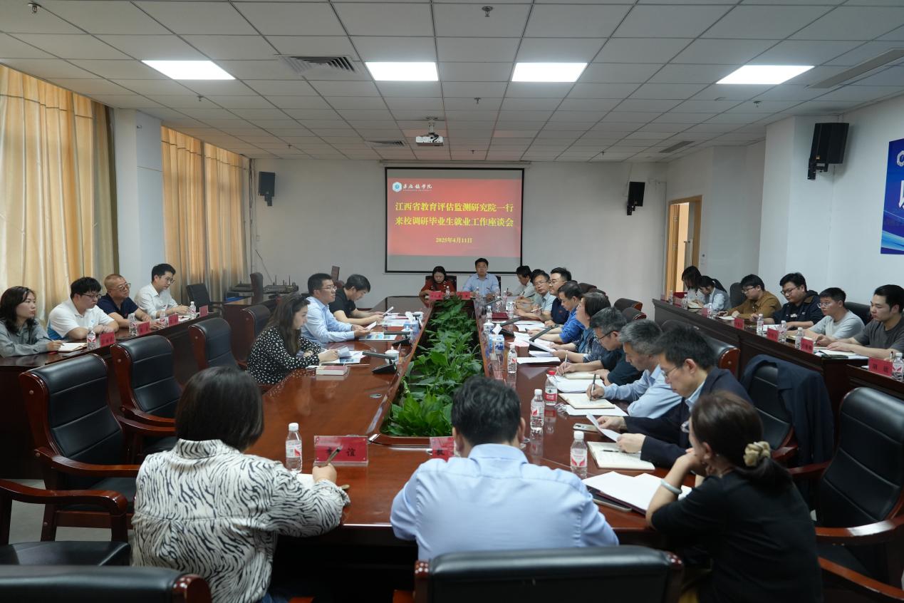 (本网讯:文|廖翊君/图|刘欢欢、王淼)4月11日下午,江西省教育评估监测研究院党委书记刘静俭一行深入我校,重点围绕2025届毕业生就业工作开展专题调研。校党委副书记、校长熊震宇,党委委员、副校长周清平陪同调研。