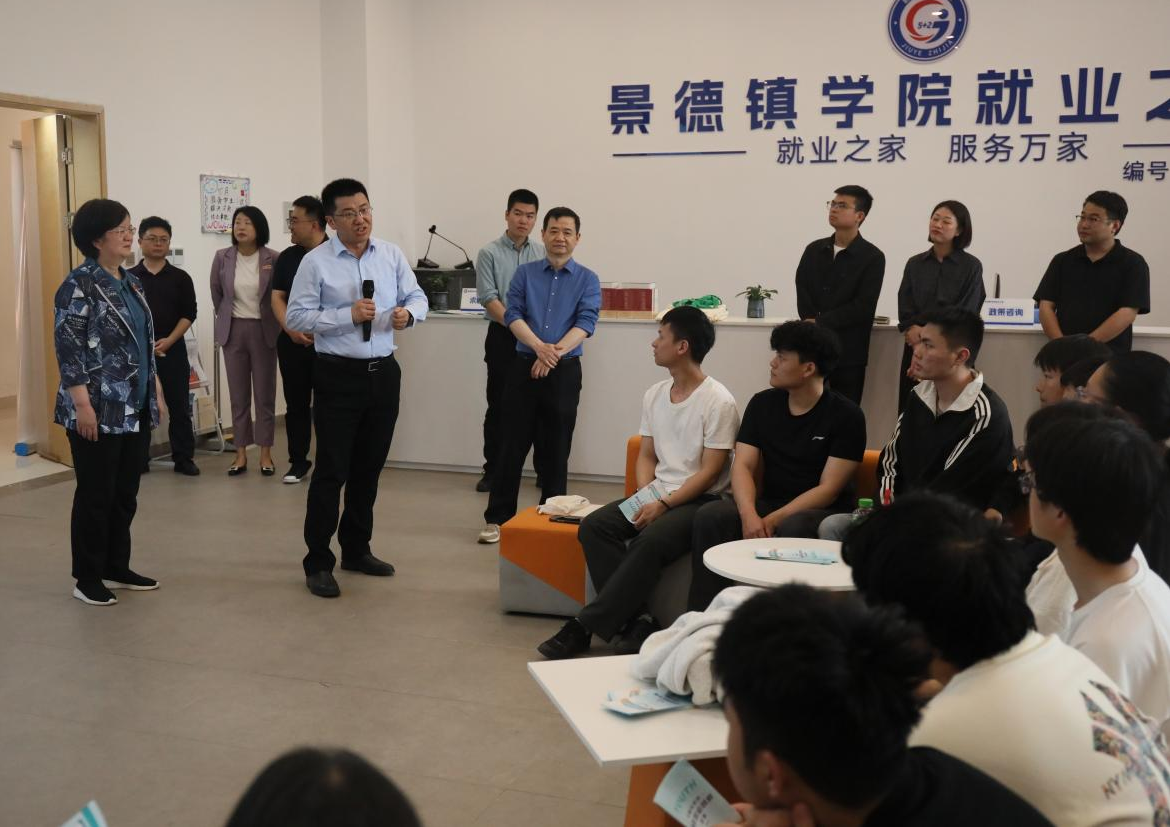 会上,周清平汇报了我校2025届毕业生就业工作情况,以及我校就业工作的具体举措和下一步计划。会前,调研组一行实地参观了景德镇学院就业之家,现场考察了校企合作洽谈室、职业生涯咨询室等功能区,详细了解岗位精准推送与毕业生跟踪服务实施情况,并与在场学生进行交流。