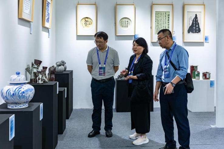 (本网讯:文|王思怡/图|孙阿伟、顾晓东)10月18日上午,第21届中国景德镇国际陶瓷博览会(以下简称瓷博会)在景德镇陶博城开幕。我校依托联合国教科文组织“陶瓷文化保护与创新”教席平台,主动对接景德镇国家陶瓷文化传承与创新实验区建设,打造对外交流新平台。我校第三届“传承与创新”教学成果展在2号馆展出,向全社会大力弘扬和展示学校陶瓷艺术教育成果。