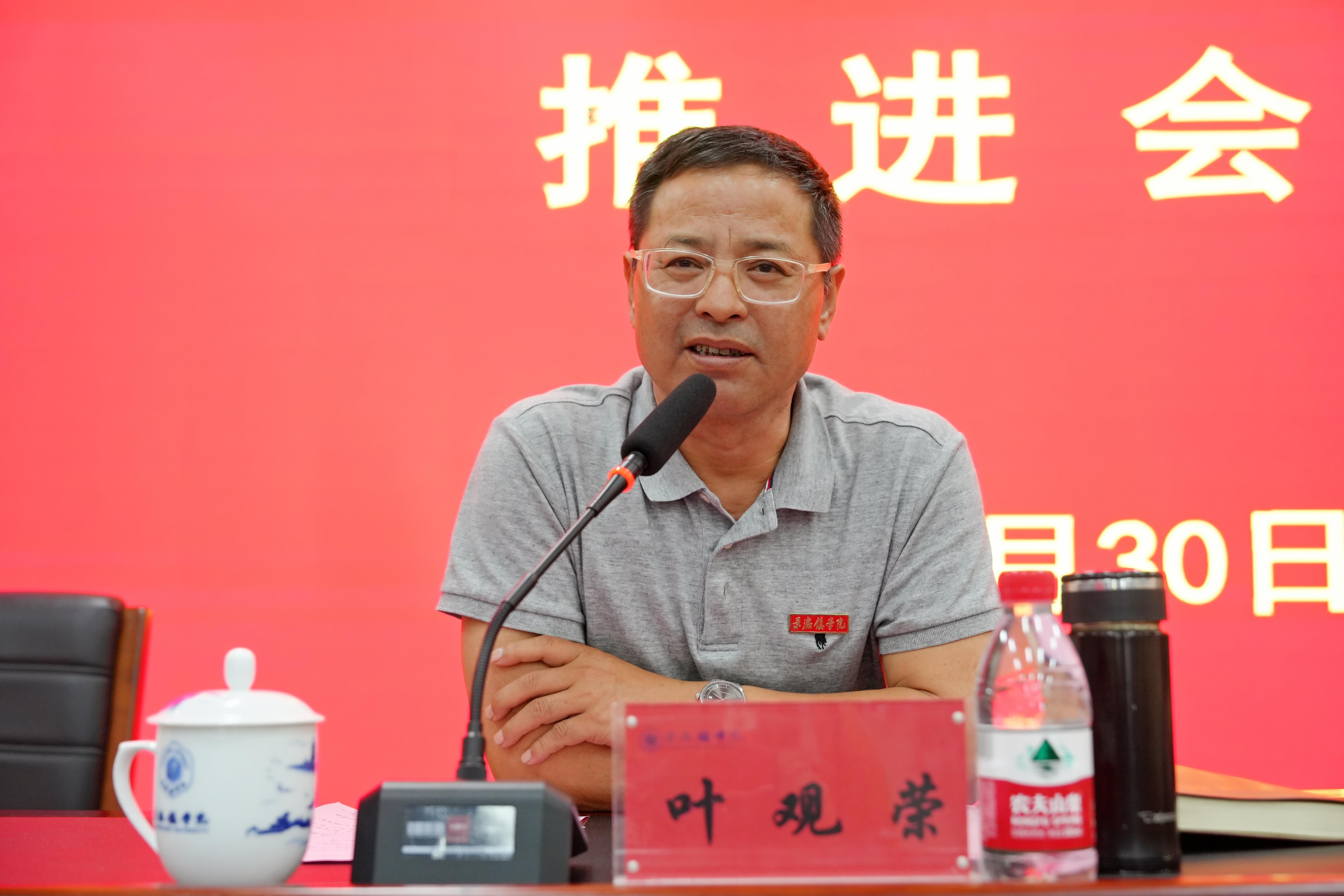 叶观荣对我校思政课建设过程中取得的成绩给予充分肯定。他指出,办好思政课,最根本的是要全面贯彻党的教育方针,解决好培养什么样的人、怎样培养人、为谁培养人的问题。他聚焦思政课“讲什么”“怎么讲”“谁来讲”三个方面,对进一步推进学校思政课建设提出三点建议:一是要坚持不懈地用习近平新时代中国特色社会主义思想铸魂育人,明确“讲什么”的问题,要充分发挥新时代伟大成就的教育激励作用,用鲜活的例子、红色故事丰富思政课内容,创新教学形式,提升课堂吸引力,讲好新时代故事,引导学生感悟党的创新理论的实践伟力,培养合格的社会主义建设者和接班人;二是要守正创新推动思政课建设内涵式发展,解决“怎么讲”的问题,要循序渐进、螺旋上升式地设计课程目标,协调推进大中小学思政教育一体化建设见行见效,不断扩大学校的品牌效应和知名度,为地方教育贡献景院力量;三是要统筹推进学校思政课教师队伍建优建强,进一步解决好“谁来讲”的问题,实施思政课教师能力提升攻坚行动,弘扬教育家精神,着力建设一支政治强、情怀深、思维新、视野广、自律严、人格正的思政课教师队伍,造就一批拔尖教师,孵化一批青年名师,不断提升思政课教师队伍的整体素质。