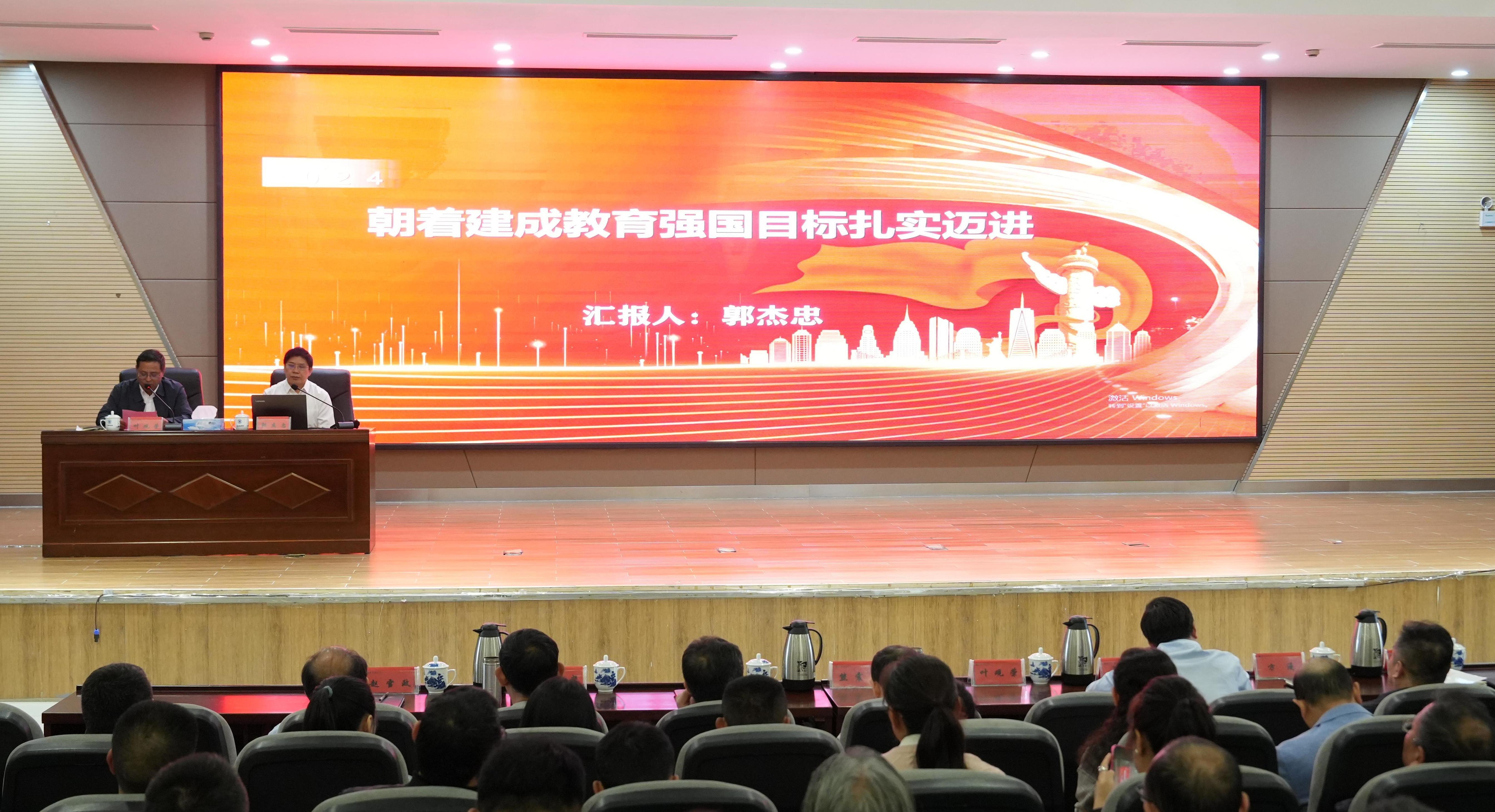 郭杰忠以“朝着建成教育强国目标扎实迈进”为题,紧密结合习近平总书记在全国教育大会上的重要讲话精神,围绕“教育强国的科学内涵和基本路径”“教育强国建设要正确处理好的重大关系”“全面推进教育强国建设的战略任务和重大举措”三个方面系统地宣讲和透彻阐释了全国教育大会精神,结合我校的发展实际提出了建议和意见,为我校进一步贯彻落实全国教育大会精神、全面深化改革、加快示范应用型本科高校建设增添了信心和决心。