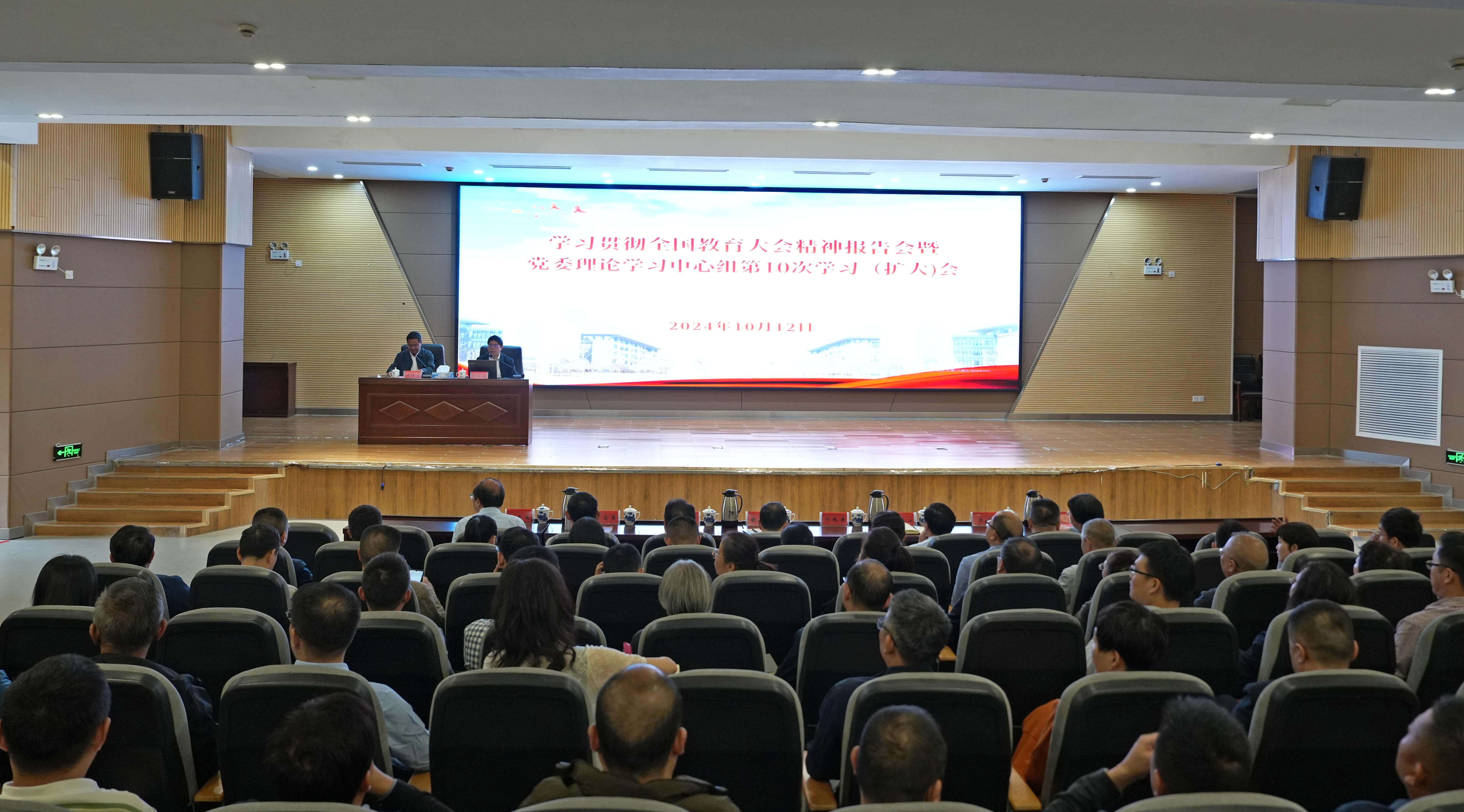 (本网讯:舒曼亮)10月12日上午,我校在图文报告厅召开学习贯彻全国教育大会精神报告会暨党委理论学习中心组第10次学习(扩大)会,校党委书记叶观荣主持会议并讲话。