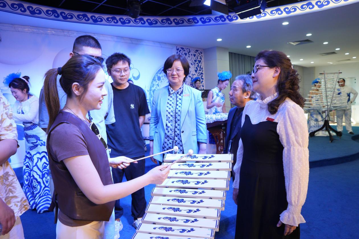 在观摩交流活动中,我校瓷乐团为采风团展示了精彩的瓷乐表演,表演内容既有传统乐曲的演绎,也有现代作曲技术的融入,展示了瓷乐器的独特魅力。采风团成员被瓷乐表演深深吸引,纷纷表示“这种将传统瓷器与现代音乐相结合的方式,既传承了文化,又创新了艺术,非常有意义。”