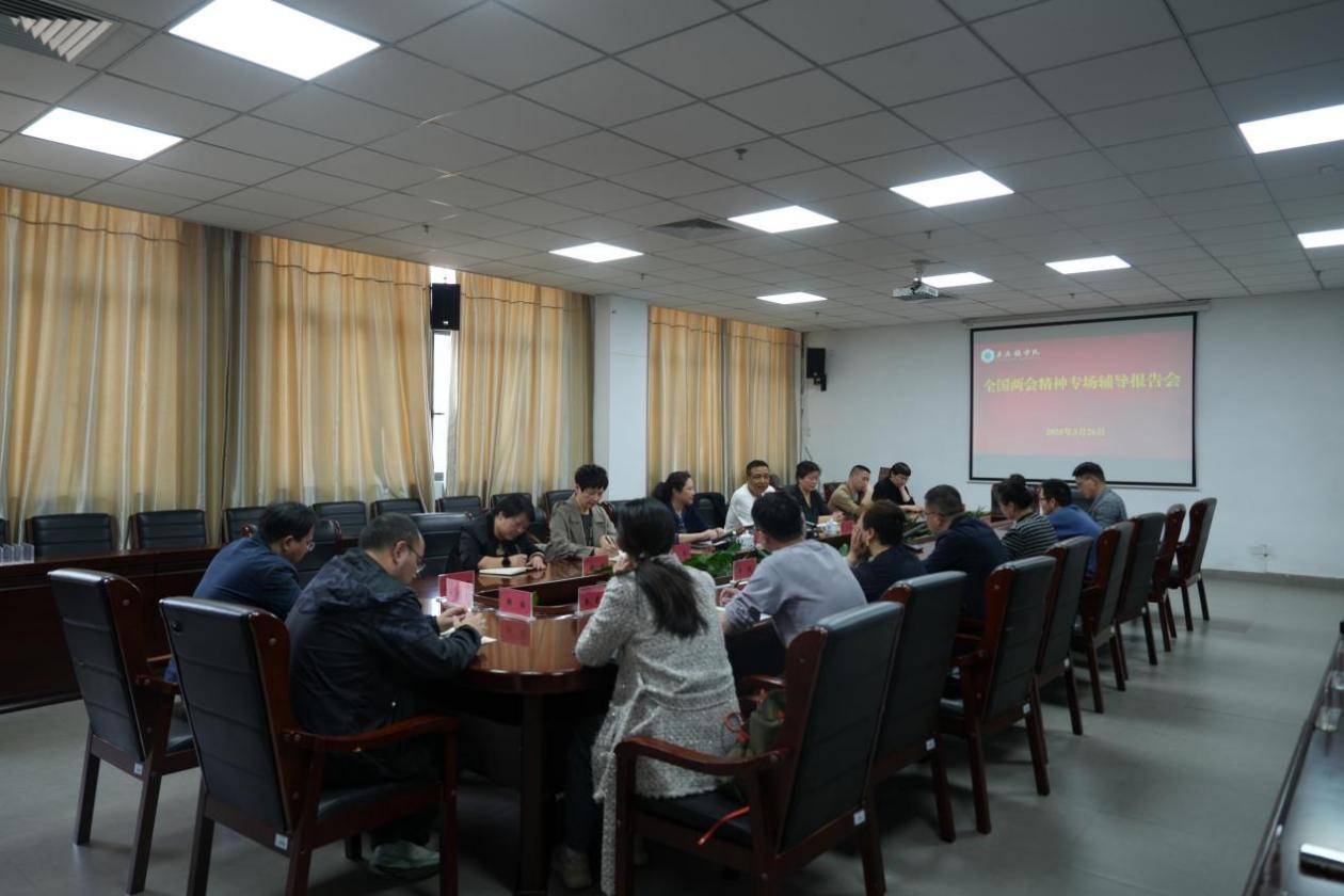 (本网讯:文|胡露婷/图|郭诗蕊)为深入学习贯彻2025年全国两会精神,引导广大党外人士深刻领会中共中央决策部署,进一步凝聚共识、汇聚力量,3月26日下午,我校在行政楼318会议室开展全国两会精神专场辅导报告会,邀请了第十四届全国人大代表、民盟盟员、海上丝绸之路研究院院长王安维教授做专题辅导报告。校党委委员、统战部部长万文军主持会议,统战部副部长程桑及学校各民主党派、统战团体负责人,校内民主党派代表人士、无党派代表人士参加会议。