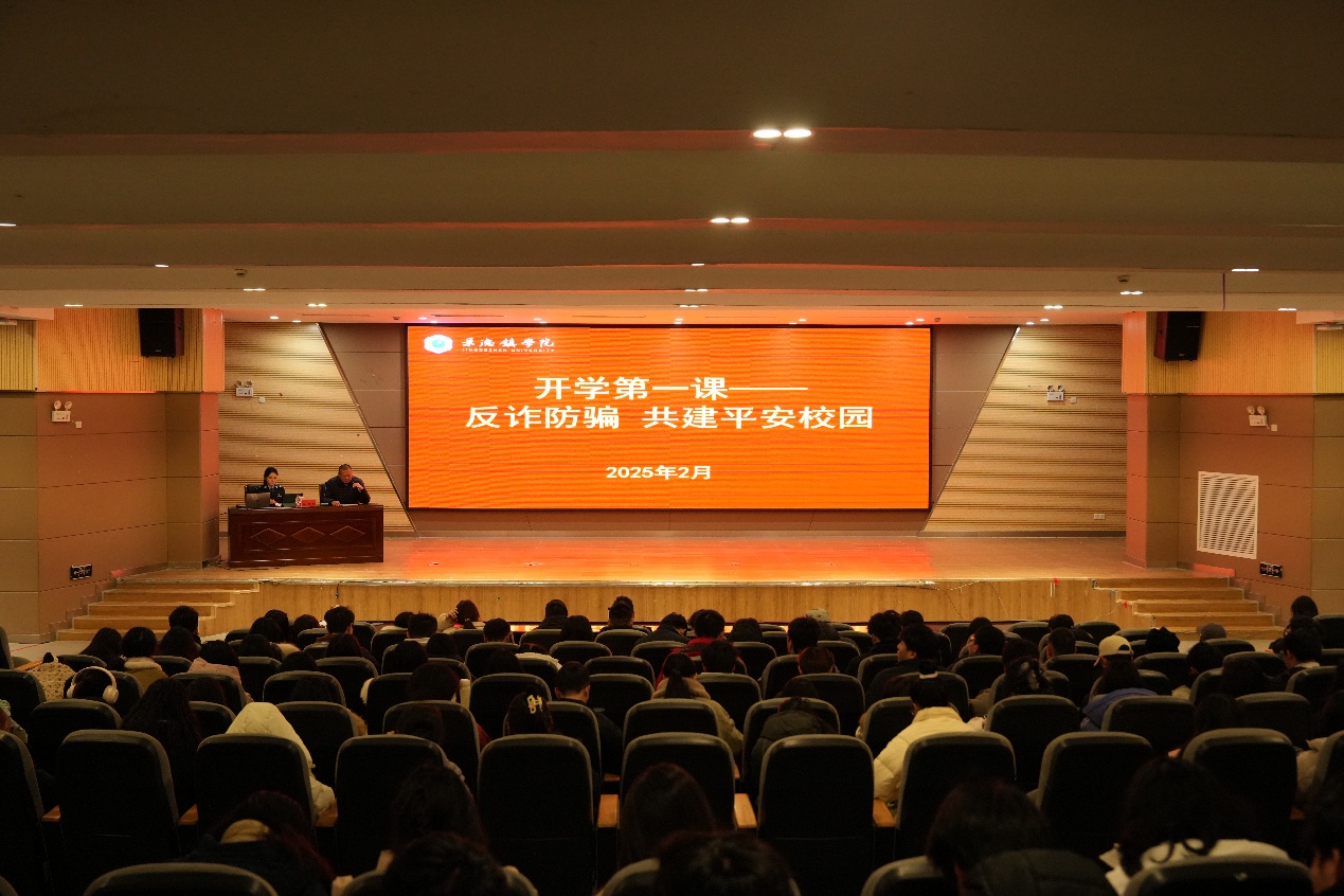 (本网讯:文|郭诗蕊/图|陈嘉瑶)为切实做好电信网络诈骗的防范与治理工作,保障广大师生财产安全,2月21号上午,我校在图文报告厅召开“开学第一课”暨预防电信网络诈骗主题讲座。浮梁县法制大队警官江俏巧应邀主讲,保卫处全体人员、学工处相关科室负责人、全体辅导员、各二级学院学生代表参加会议。