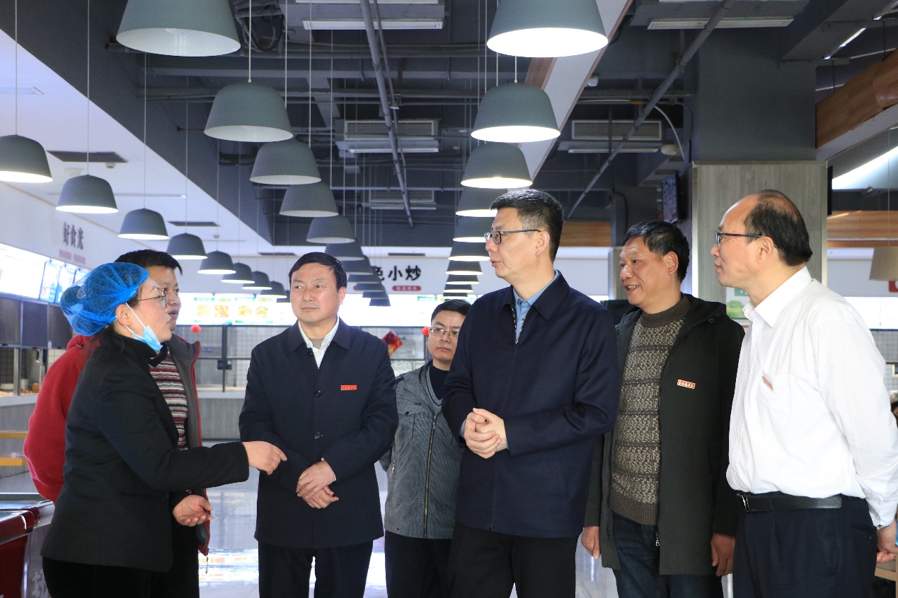 (本网讯:文|郭诗蕊/图|童炜轶、郭诗蕊)4月3日下午,景德镇市人民政府党组成员、副市长罗文军深入我校就校园食堂食品安全管理工作进行督导调研。校党委副书记王丽心、副校长黄志坚,党委委员、宣传部部长赵雪政等相关部门人员陪同调研。