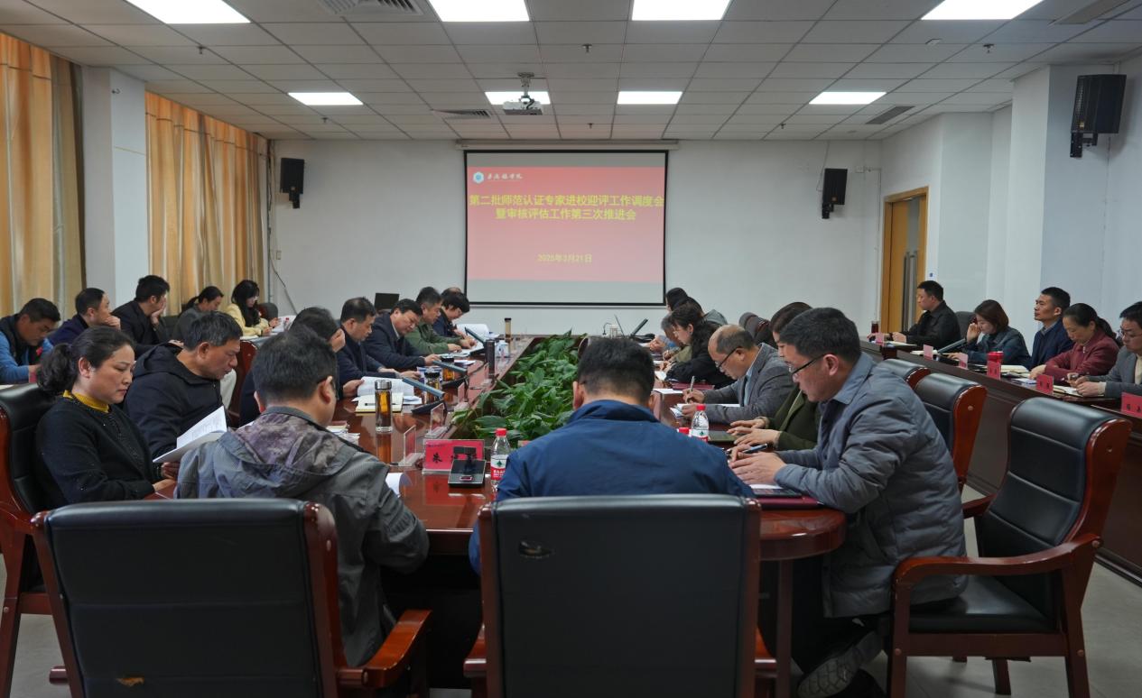 (本网讯:文|景苑轩/图|陈嘉瑶、郭诗蕊、刘文静)为进一步统一思想、明确任务、压实责任,确保师范类专业认证迎评工作与审核评估工作协同推进、高效落实。3月21日下午,我校在行政楼318会议室召开了第二批师范类专业认证迎评工作调度会暨审核评估工作第三次推进会。校党委副书记、校长熊震宇,党委副书记王丽心,党委委员、副校长郑昕芾,副校长黄志坚,党委委员、副校长周清平,党委委员、统战部部长万文军,党委委员、宣传部部长赵雪政出席会议,党委委员、副校长方漫主持会议。