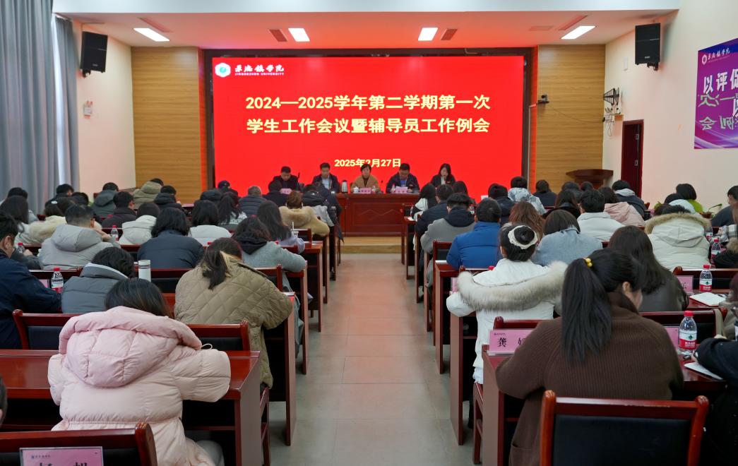 (本网讯:文|杜雨翰/图|杜雨翰、刘苗苗)为扎实推进学生工作有效展开,切实将辅导员队伍建设各项举措落细落实,全面提升辅导员的专业水平和教学质量,为新学期学生工作指明方向,2月27日下午,我校在第一报告厅召开2024-2025学年第二学期第一次学生工作会议暨辅导员工作例会。校党委委员、副校长周清平出席会议并讲话,学工处副处长徐新、程娟,心理教育中心主任郑勇军出席,学工处副处长(主持工作)赵新主持会议。