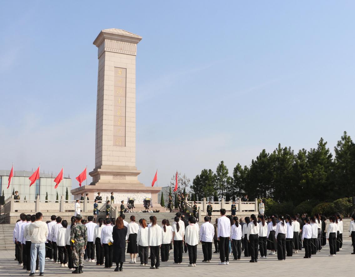 师生手持素菊依次登阶上前向先烈献花,随后缓步绕行瞻仰革命烈士纪念碑,还前往革命烈士纪念馆重温革命先烈的英雄事迹。