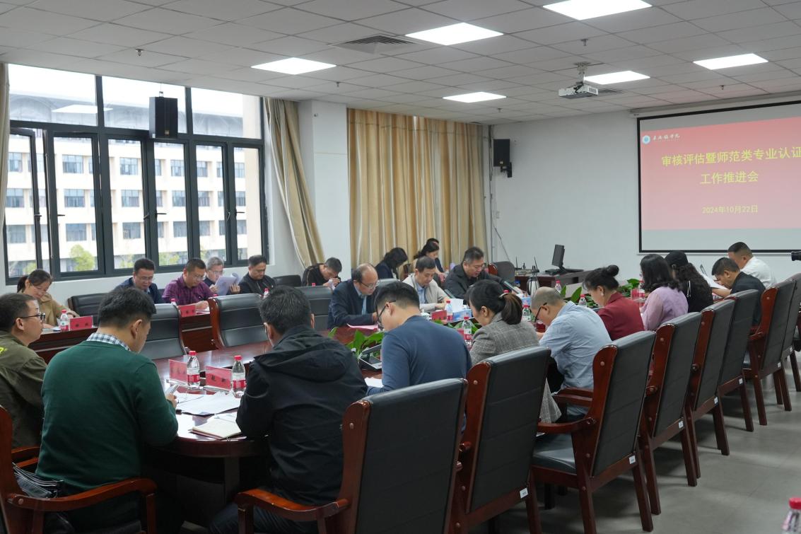 本网讯(文|曹立纬、龚媛/图|刘欢欢、钟四花、杜雨翰)10月22日上午,我校在行政楼318会议室召开审核评估暨师范类专业认证工作推进会。校党委副书记、校长熊震宇出席会议并讲话,党委委员、副校长方漫主持会议,党委委员、宣传部部长赵雪政和相关职能部门负责人及各二级学院党政负责人参加会议。