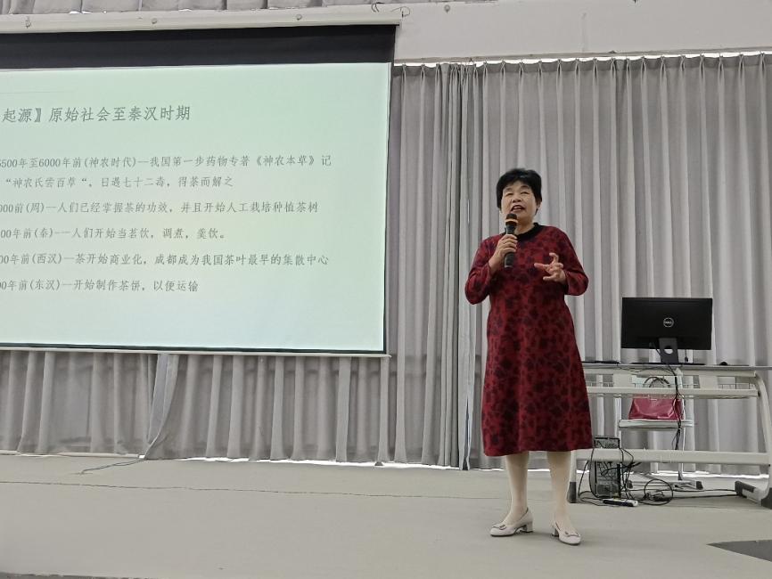 (本网讯:文|吴玉和/图|金爱云)10月27日下午,景德镇市老科协联合我校生物与环境工程学院在校第三报告厅举办了第三届“中国老科协科学报告团江西报告会——茶的发展历程及浮梁茶文化概论”。景德镇市老科协会长周景伟、校党委副书记王丽心、景德镇市老科协副会长、秘书长余爱菊,副会长嵇景辉、汪卫东,生环学院院长田双以及景德镇学院老科协副会长、秘书长蔡新安和200多位学生代表参加讲座。讲座由景德镇市老科协科普报告团成员、市茶科所专家刘柳浪主讲。