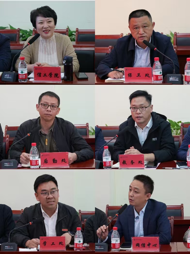 党政办、宣传部、后勤处、教务处、保卫处、学工部(处)、团委、网信中心、二级学院等相关职能部门负责同志、师生代表参加活动。