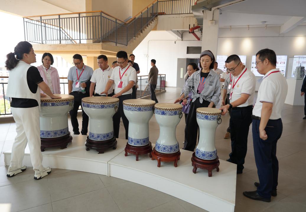 培训班一行首先参观了音乐舞蹈学院。瓷乐作为我校音乐舞蹈学院的特色项目,由音乐舞蹈学院院长于芳向来访嘉宾进行了详细介绍,来访嘉宾通过了解瓷乐的历史渊源、制作工艺、演奏技巧和现场观看瓷乐演出,被瓷乐独特的艺术魅力所吸引,给予了高度赞誉。