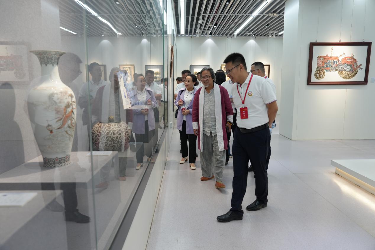 在校美术馆,美术馆馆长郑丰银向来访嘉宾介绍了美术馆的藏品及展览特色。美术馆内的作品风格多样,既有传统艺术的瑰宝,也有现代艺术的创新之作,为客人们提供了一场视觉盛宴。