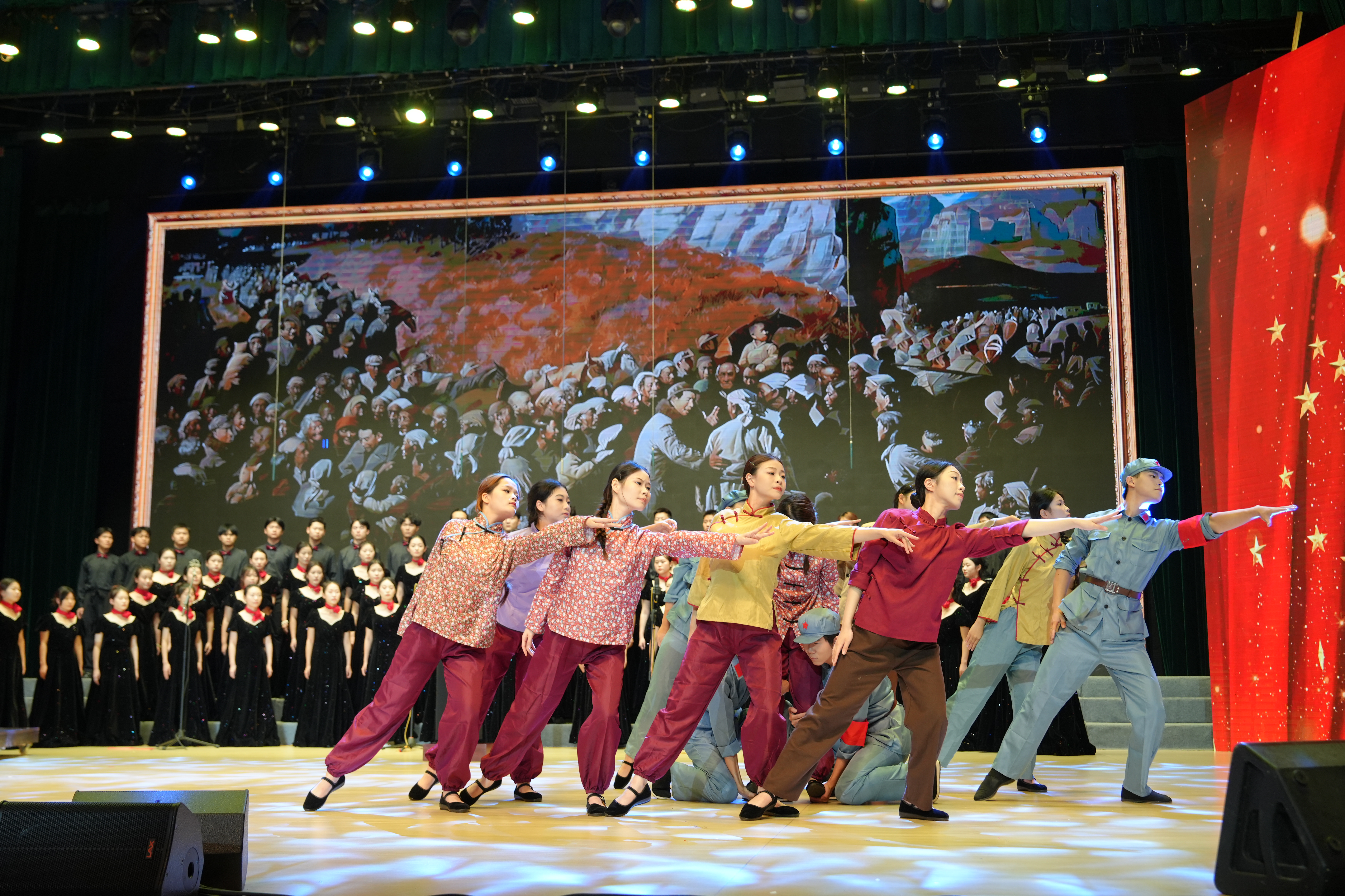 由我校音乐舞蹈学院100名师生组成的合唱团参加了此次歌咏盛会,以青春的激情和饱满的爱国热情,用心用情地歌唱祖国,共庆华诞。校党委委员、副校长周清平,党委委员、宣传部部长赵雪政,音乐舞蹈学院院长于芳和教师代表们观看了演出。