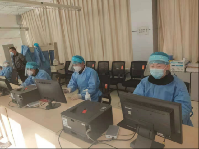 在做好自我防护的前提下,根据医院工作需要,他被分配至门诊大厅出入口对进出人员进行测温、消毒和信息登记工作。每日身着防护服的他不断对来往医患重复:“您好!请出示健康码,排队量测体温,同时请在这边登记您的个人信息!”