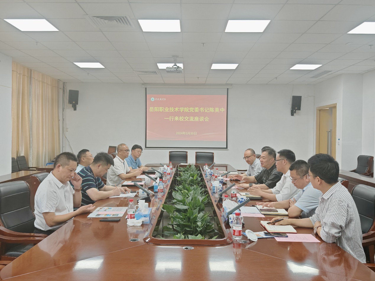 (本网讯:经管轩)5月30日,岳阳职业技术学院党委书记陈美中带领招生就业处处长潘正茂、机电工程学院院长汤熊、商贸物流学院院长张威、招生就业处副处长周斌等一行来我校进行调研交流。校党委委员、副校长方漫、教务处副处长(主持工作)司春灿、机械电子工程学院院长郑立斌,经济管理学院副院长(主持工作)吕慧明,招生办公室主任徐忠民及就业中心负责同志参加座谈交流。