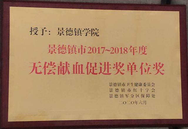 (本网讯:张琳)6月14日,第十七届世界献血者日宣传活动暨2017-2018年度无偿献血表彰仪式在市人民广场举行。景德镇市副市长、市献血工作协调小组组长、市红十字会会长熊皓出席活动并讲话。我校被授予“景德镇市2017-2018年度无偿献血促进奖单位奖”。