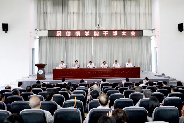 (本网讯:汪万鹏)6月2日上午,景德镇学院在二号报告厅召开全校干部大会,宣布省委关于景德镇学院党委书记调整的决定。省委组织部副部长、江西省非公有制经济组织与社会组织工作委员会书记周训国出席会议并讲话。景德镇学院领导班子成员、中层副职以上领导干部及正高级职称人员参加会议。