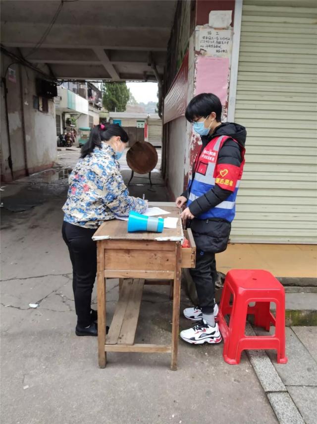 “请拿出身份证,需要登记姓名、身份证号码、联系电话以及车辆信息。你们一车几个人?从哪里过来的?目的地是哪?”“现在是非常时期,外来人员不允许通行,还请理解!”作为一名值岗志愿者,每来一辆车,余冰冰同学都会重复上面的话语,并在登记表上做详细记录。提醒车上所有乘客佩戴好口罩,进行车辆登记排查,对外来车辆及非本地户口的人员进行劝返,为街道社区居民防疫安全提供保障,为全国防疫工作尽一份力量。