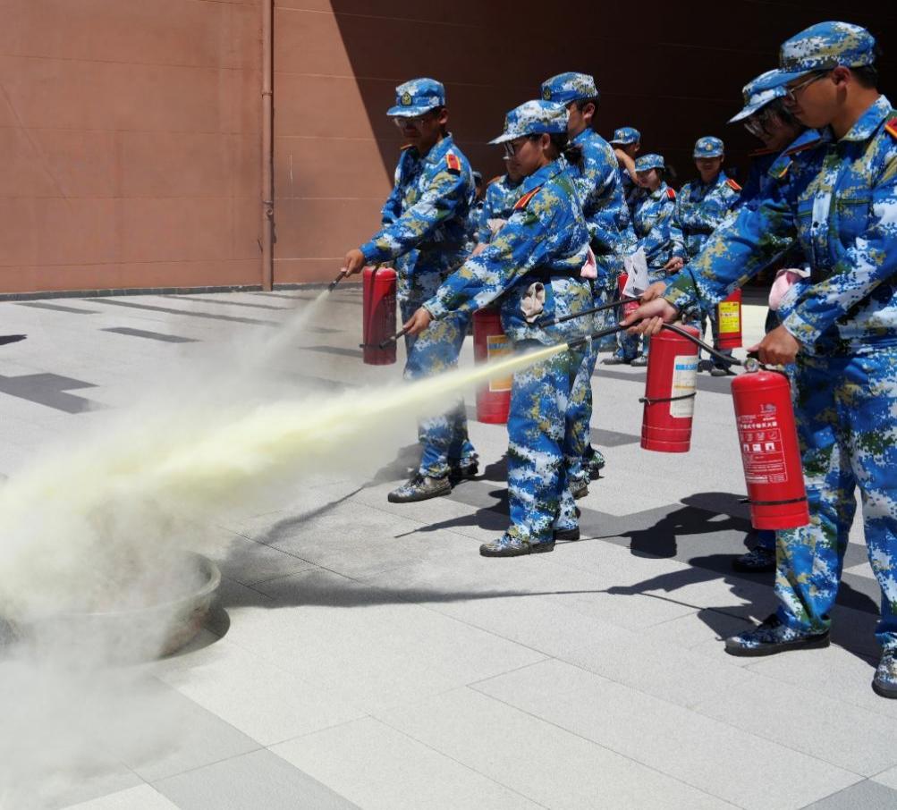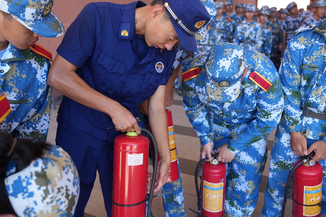 疏散演练结束后,消防员在产教融合中心正门处为新生们进行了消防安全培训,详细介绍并示范灭火器、消火栓等常见消防设施器材的使用方法及操作要领,并指导同学们进行油盆灭火演练。新生们积极参与,与消防器材来了一次“零距离接触”。