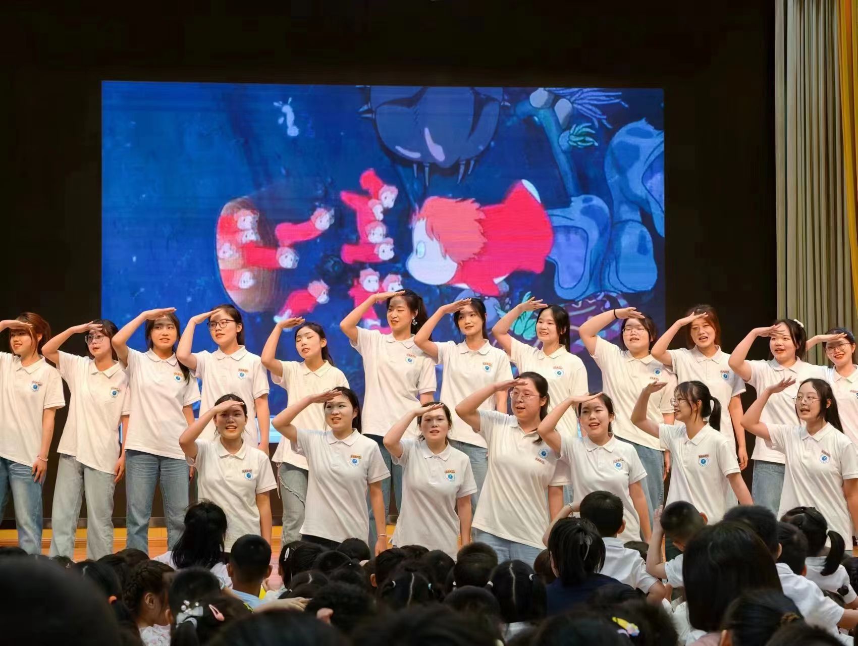 作为压轴表演,教育学院“青蓝”女子合唱团为孩子们带来了合唱《绒花》和《悬崖上的波妞》。她们的歌声悠扬,充满着对美好生活的向往和追求,赢得了在场观众的热烈掌声和喝彩,整场演出在优美的合唱声中完美落幕。