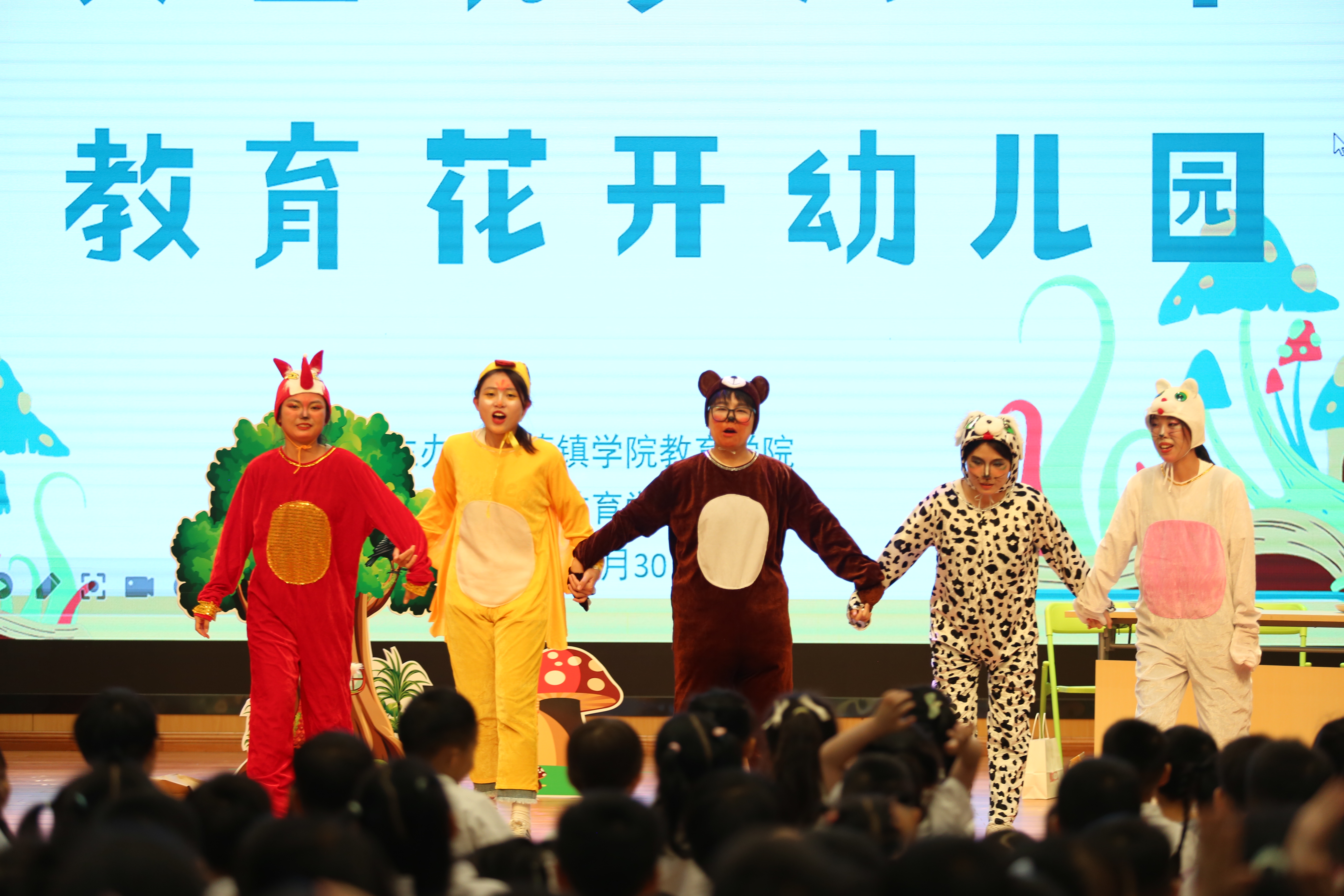 (本网讯:图|章海翔、昌江区中心幼儿园/文|张雪祺)为深化校地合作,促进基础教育协同提质,提高学前教育和小学教育专业学生的专业素养和教育情怀,5月30日下午,我校教育学院“鸿志”志愿服务团走进昌江区中心幼儿园开展“文艺筑梦六一节教育花开幼儿园”文化志愿服务演出活动,为孩子们送上了六一儿童节的真挚祝福。校党委委员、统战部部长万文军,教育学院党委书记李莉,昌江区教育体育局党组书记、局长陈进辉,教育学院党委副书记冯唐锴,教育学院党委委员、副院长黄书生,昌江区中心幼儿园党支部书记、园长万淑英,昌江区教育体育局学前办主任江洪出席活动。