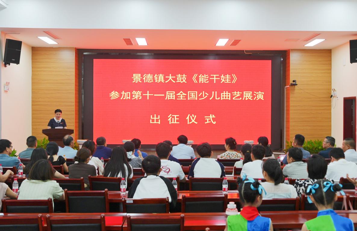 (本网讯:李婷婷)7月31日上午,景德镇大鼓《能干娃》参加第十一届全国少儿曲艺展演出征仪式在校第一报告厅举行。