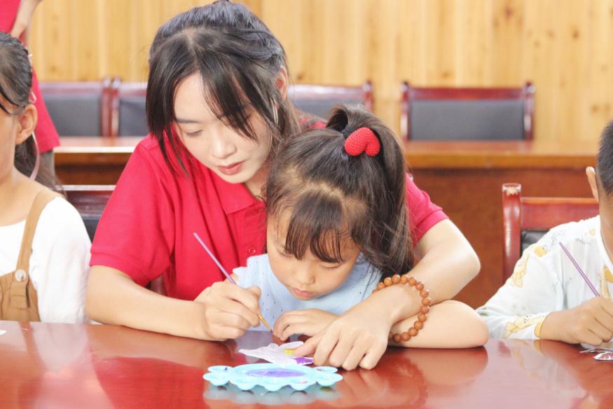 团队成员张青遥暖心帮助小朋友勾勒花鸟画 校团委供图