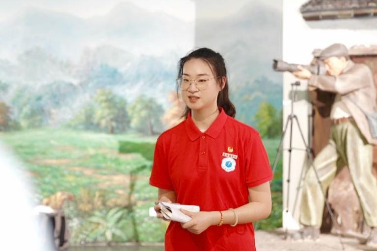实践队成员骆奕祯以蓝冠噪鹛保护、文明宣讲为主题,在蓝冠噪鹛科普馆内向游客科普着蓝冠噪鹛和石门村的故事,“蓝冠噪鹛是一种极度濒危的鸟类,而婺源则是其全球唯一的野外栖息地。每年4月至7月,在繁衍期,它们都要返回到婺源特有的水口林里栖息……”在科普鸟类知识的同时,她也鼓励大家文明观赏,在实地研学中感受习近平生态文明思想,为打造美丽中国“江西模板”、建设人与自然和谐共生的现代化贡献力量。