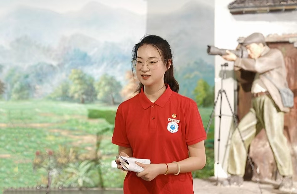 骆奕祯同学在蓝冠噪鹛科普馆内向游客科普 校团委供图