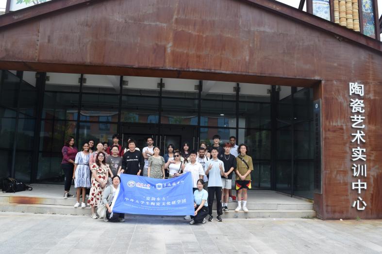 中外大学生在我校陶瓷实训中心合影留念 国际交流与教育学院供图