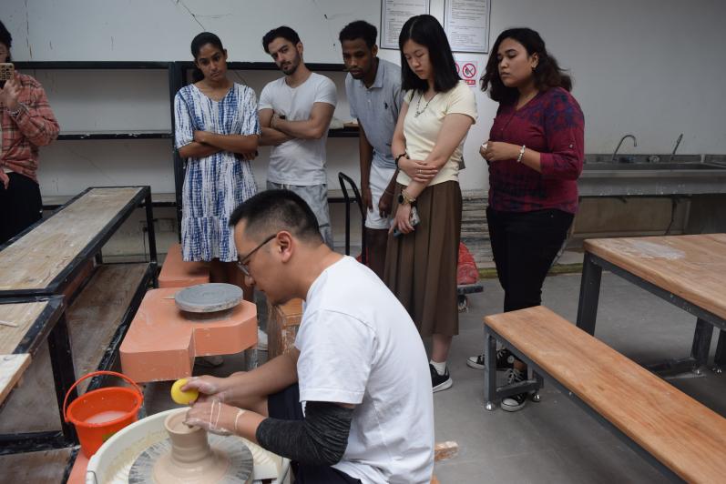 大学生学习、体验拉坯 国际交流与教育学院供图