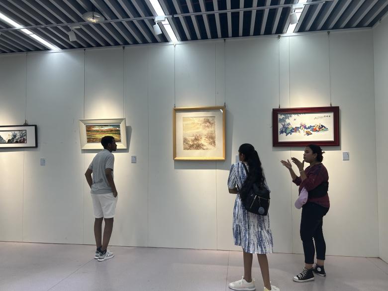 中外大学生参观我校美术馆 国际交流与教育学院供图