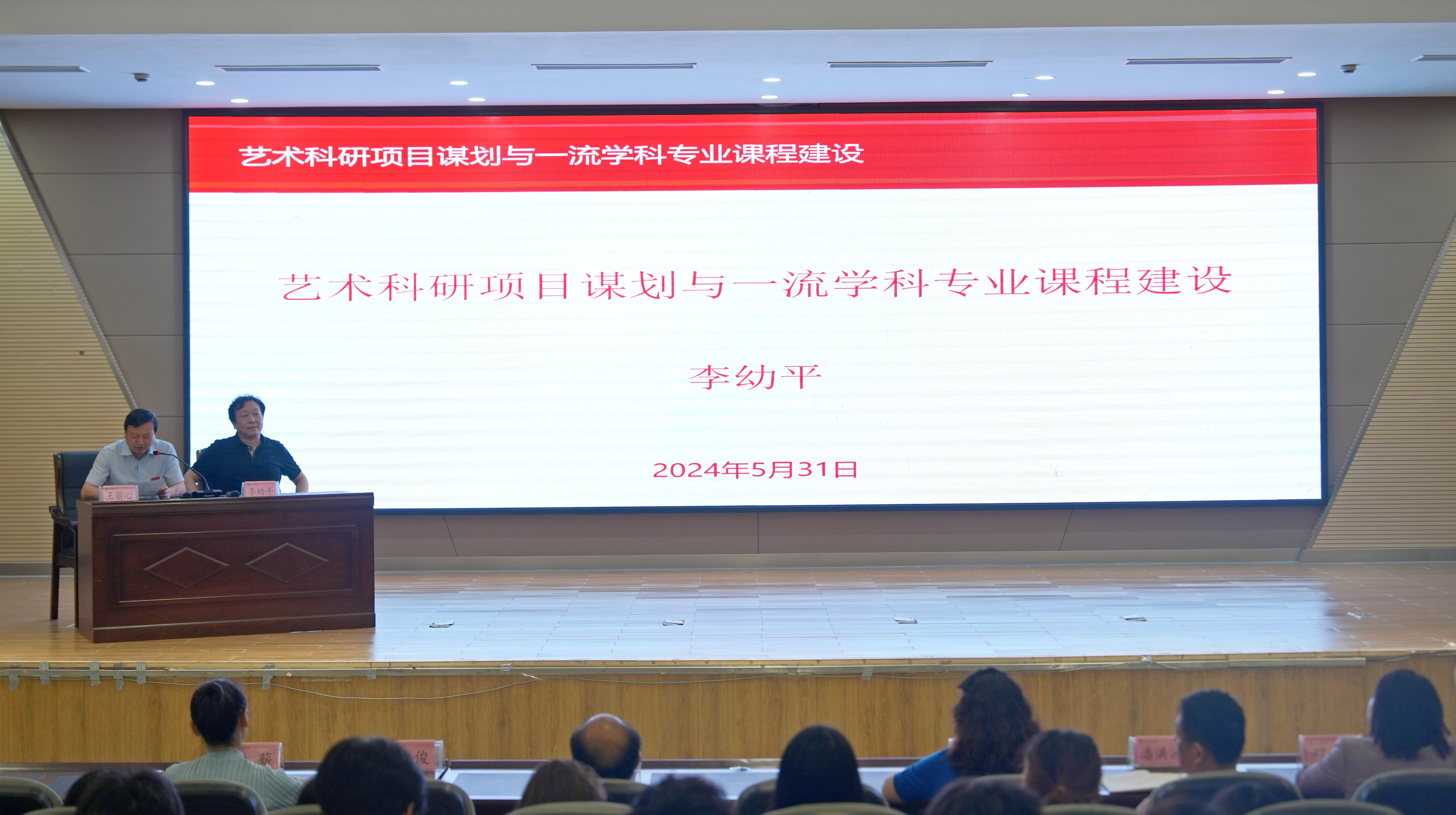 (本网讯:文雪、廖翊君)为实现以科研促建,提高学校学科建设发展,5月31日下午,我校邀请武汉音乐学院原党委委员、副校长李幼平教授在校图文报告厅作题为“艺术科研项目谋划与一流学科专业课程建设”的学术讲座。校党委副书记王丽心主持讲座,党委委员、宣传部部长赵雪政,音乐舞蹈学院院长于芳、副院长潘洪涛,景德镇陶瓷大学中国轻工业陶瓷研究所高级工程师朱俊,音乐舞蹈学院党委委员廖新、程娟及师生代表参加讲座。