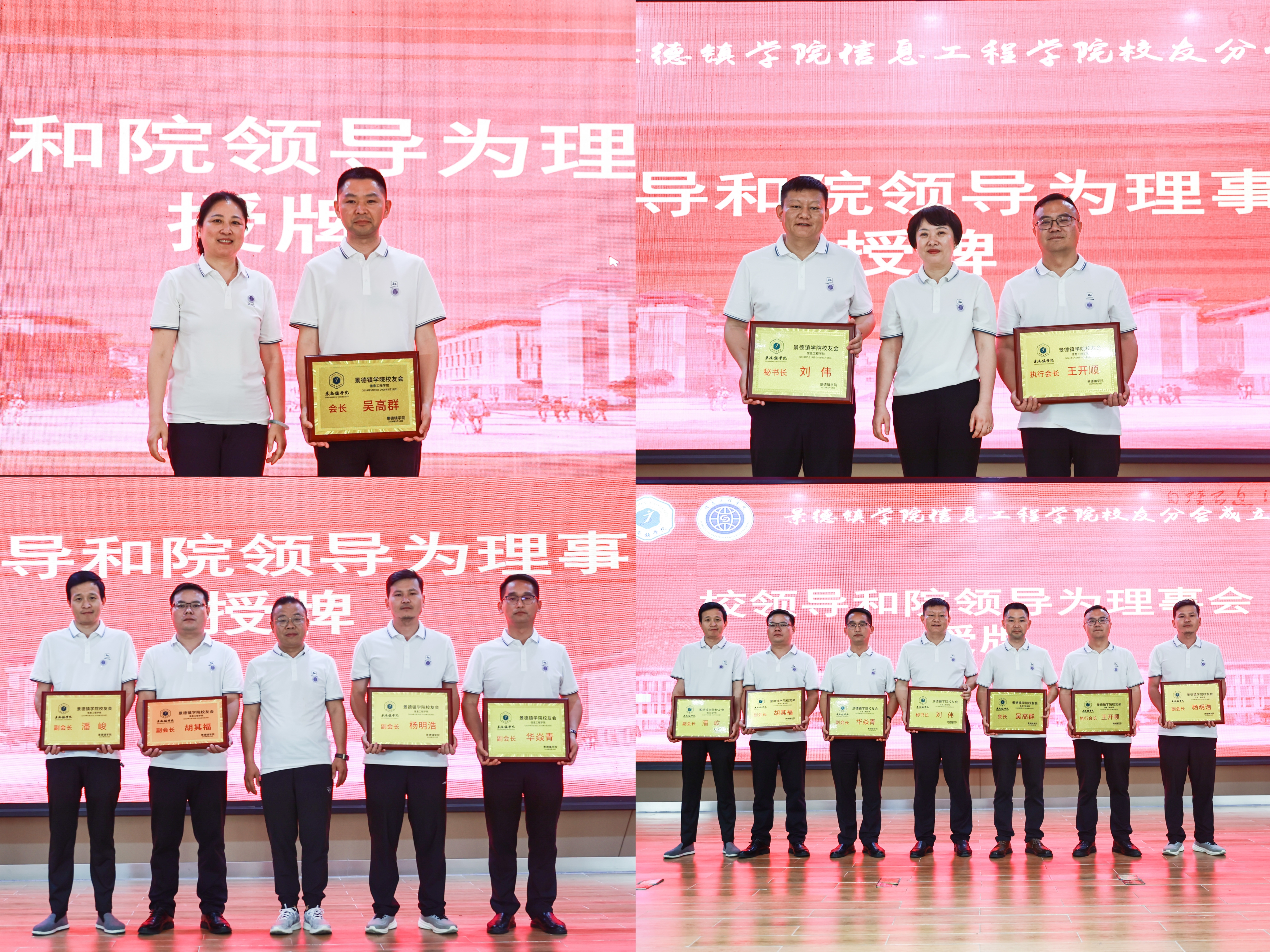 随后,陈运平和新任会长2000级校友吴高群共同为信工学院校友分会揭牌,万文军、练缤艳、以及信息工程学院副院长李香泉分别为校友分会理事会成员进行了授牌。