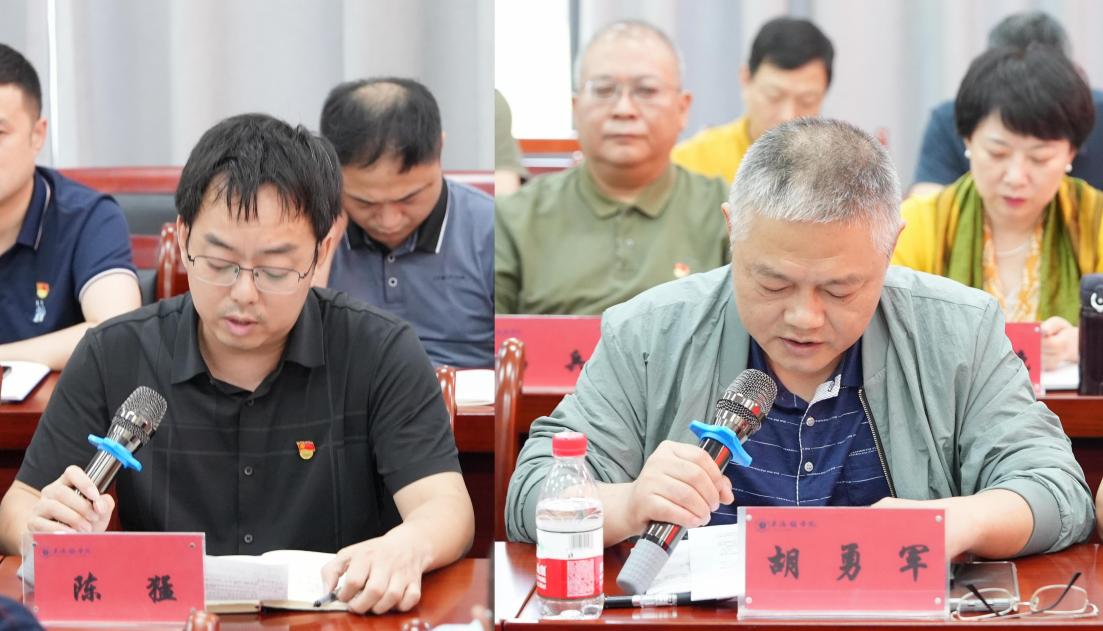 会上,赵雪政对专题学习内容进行领学。人文学院院长陈猛和计划财务处处长胡勇军作交流发言。