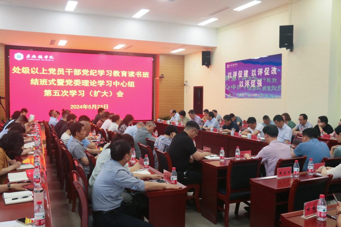 (本网讯:文|刘欢欢/图|刘欢欢、喻振鑫)5月23日上午,我校在第一报告厅召开处级以上党员干部党纪学习教育读书班的结班式暨党委理论学习中心组第五次学习(扩大)会。党委副书记王丽心,党委委员、副校长郑昕芾,党委委员、副校长方漫,副校长黄志坚,党委委员、副校长周清平,党委委员、组织部部长朱贺江,党委委员、宣传部部长赵雪政出席会议。