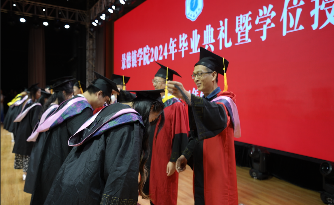 郑昕芾代表学校向顺利完成学业的2024届毕业生们致以最热烈的祝贺!为毕业生们即将奔赴的未来送上最美好的祝福!他表示,2024届毕业生注定是不平凡、不普通的一届。同学们是光辉历史的见证者,更是学校建设发展的参与者、贡献者,每一份成绩都凝聚着大家的共同努力。他鼓舞同学们要做胸怀鸿鹄壮志的有志青年,让青春“充满电”,要做身负万般本领的实干青年,让青春“不打烊”,要做赤胆忠心的报国青年,让青春“燃起来”。希望同学们无论在什么岗位上,都要继续践行景德镇学院“自强不息,泽土惠民”的校训,大力弘扬“勤学、善悟、求实、创新”的学风,“文明、和谐、开放、奋进”的校风,拼搏铸就卓越人生,为母校增光添彩。