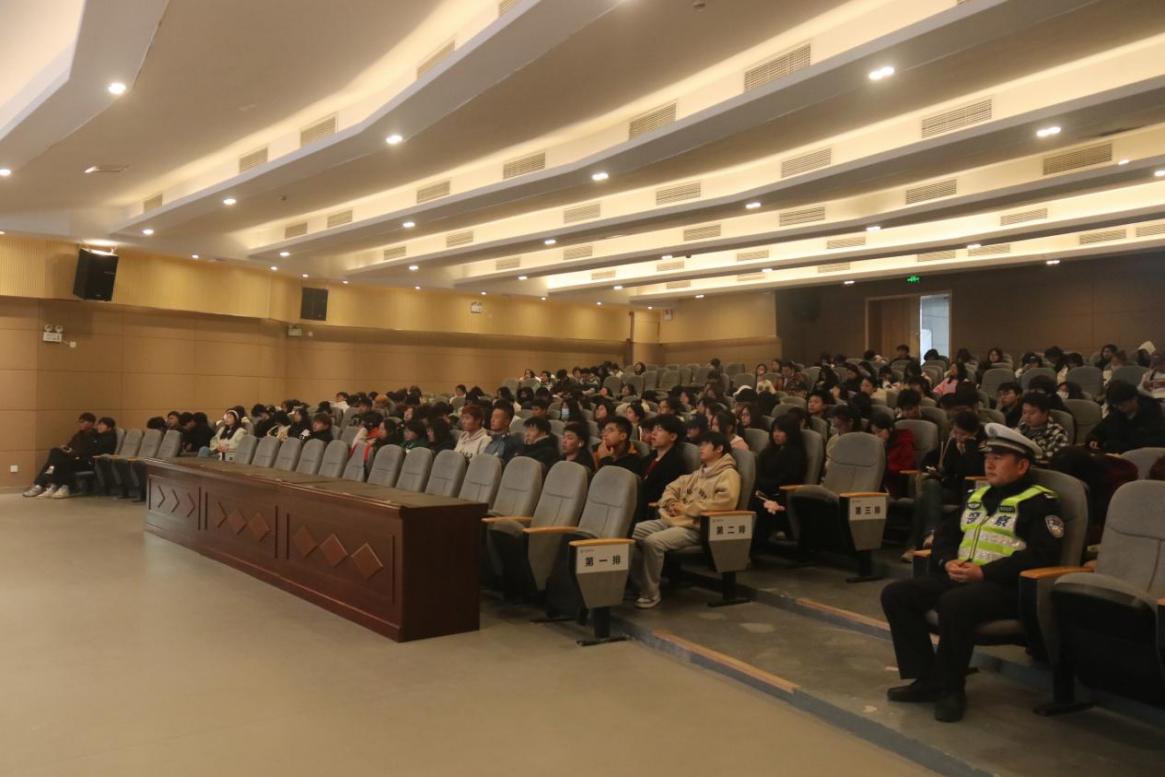 学工处相关科室负责人、各二级学院辅导员、各二级学院学生代表及保卫处全体成员聆听讲座。