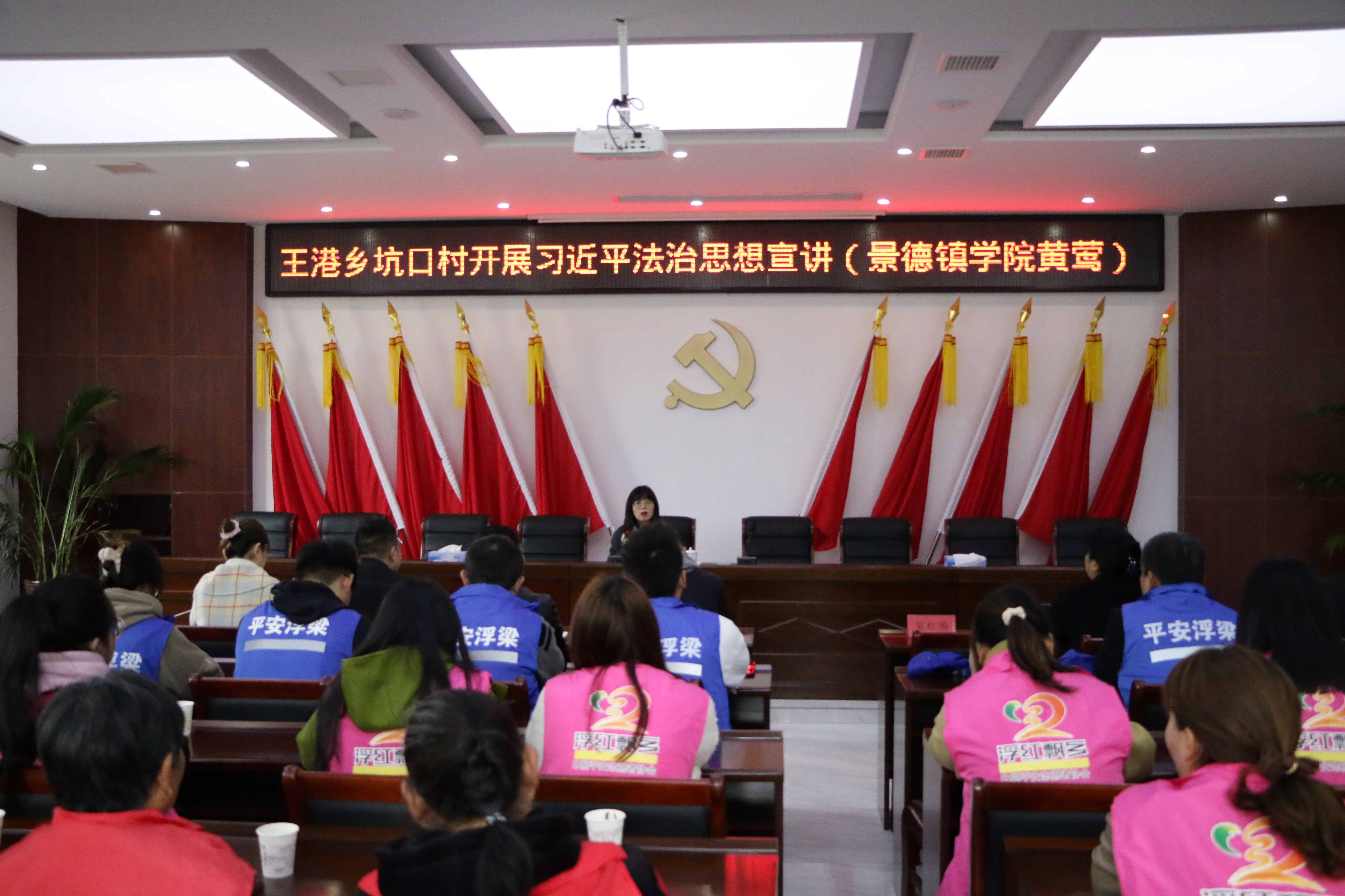 (本网讯:董海强、王佳佳)为进一步弘扬法治精神,充分发挥法治宣传教育在实施乡村振兴战略中的积极作用。3月23日上午,我校在王港乡坑口村宣讲习近平法治思想,校宣传部副部长郑金江,“习近平法治思想大讲堂”成员黄莺和统战科科长洪超参加宣讲。