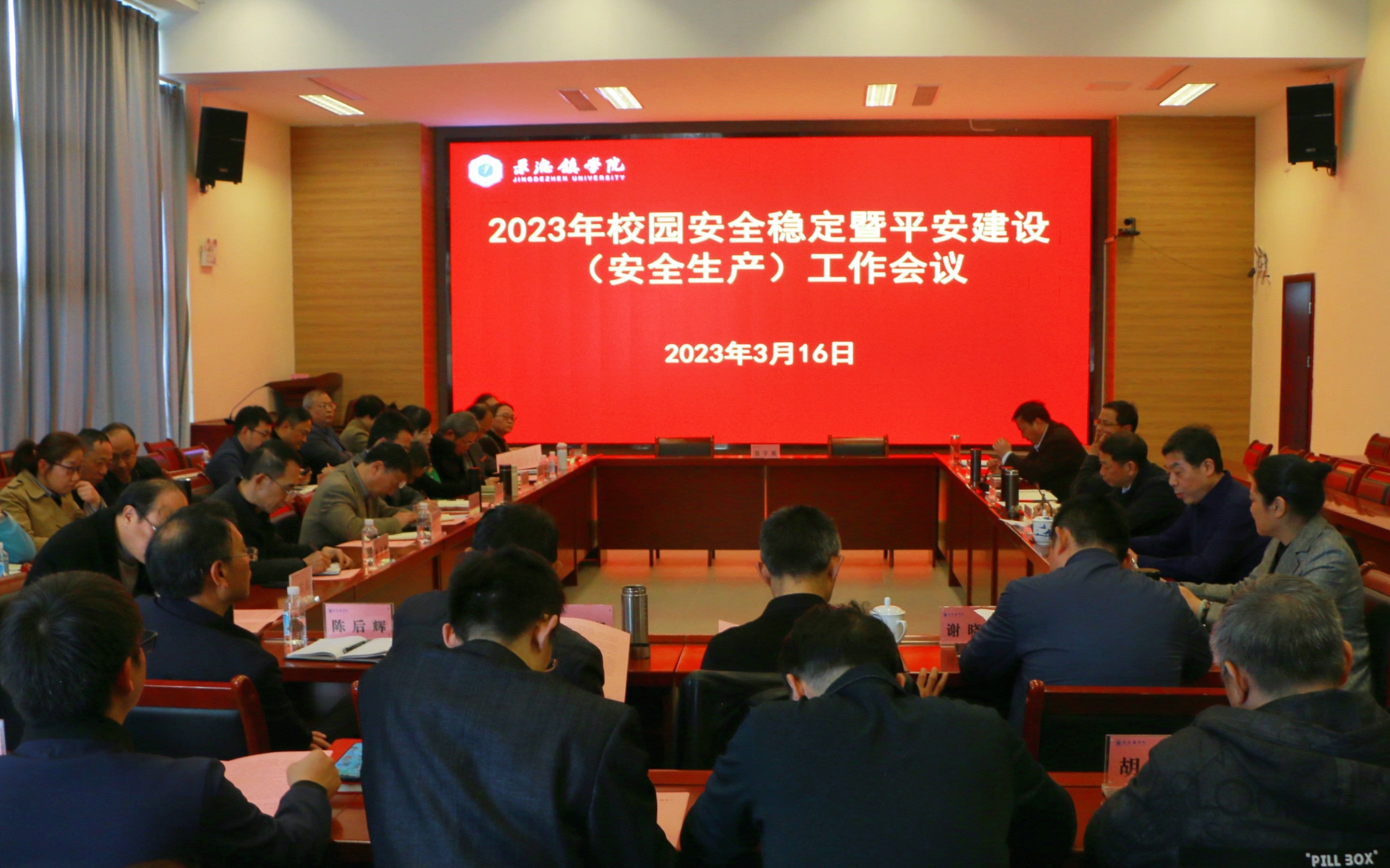 (本网讯:文|李虹/图|欧阳银芳、欧阳晰)为切实做好2023年度校园平安建设工作,进一步压实工作责任,强化工作措施,营造良好的校园安全环境和氛围,3月16日下午,我校在第一报告厅召开校园安全稳定暨平安建设(安全生产)工作会。校党委书记叶观荣代表学校与各责任单位签署了《2023年景德镇学院平安建设(安全稳定)目标管理责任书》并讲话,校党委副书记、校长陈运平主持会议。党委副书记王丽心,党委委员、副校长郑昕芾,党委委员、纪委书记李新荣,党委委员、组织部部长朱贺江,党委委员、统战部部长万文军出席会议。