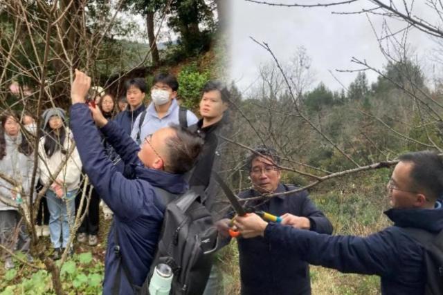 在桃树修剪过程中,叶林江老师详细讲述了桃树修剪的专业理论知识,并耐心示范了修剪的技巧及注意事项,包括如何选择合适的角度、修剪枝叶的技巧以及保护桃树生长点的重要性。学生们在老师的指导下积极参与,拿起修剪工具,修剪桃树数百余株,以最细致的态度投入到了艰辛而有趣的修剪工作中。学生们通过参与桃树修剪,深刻感受到了劳动生产的艰辛与不易,对劳动的价值和意义也有了更深入的理解和体会。