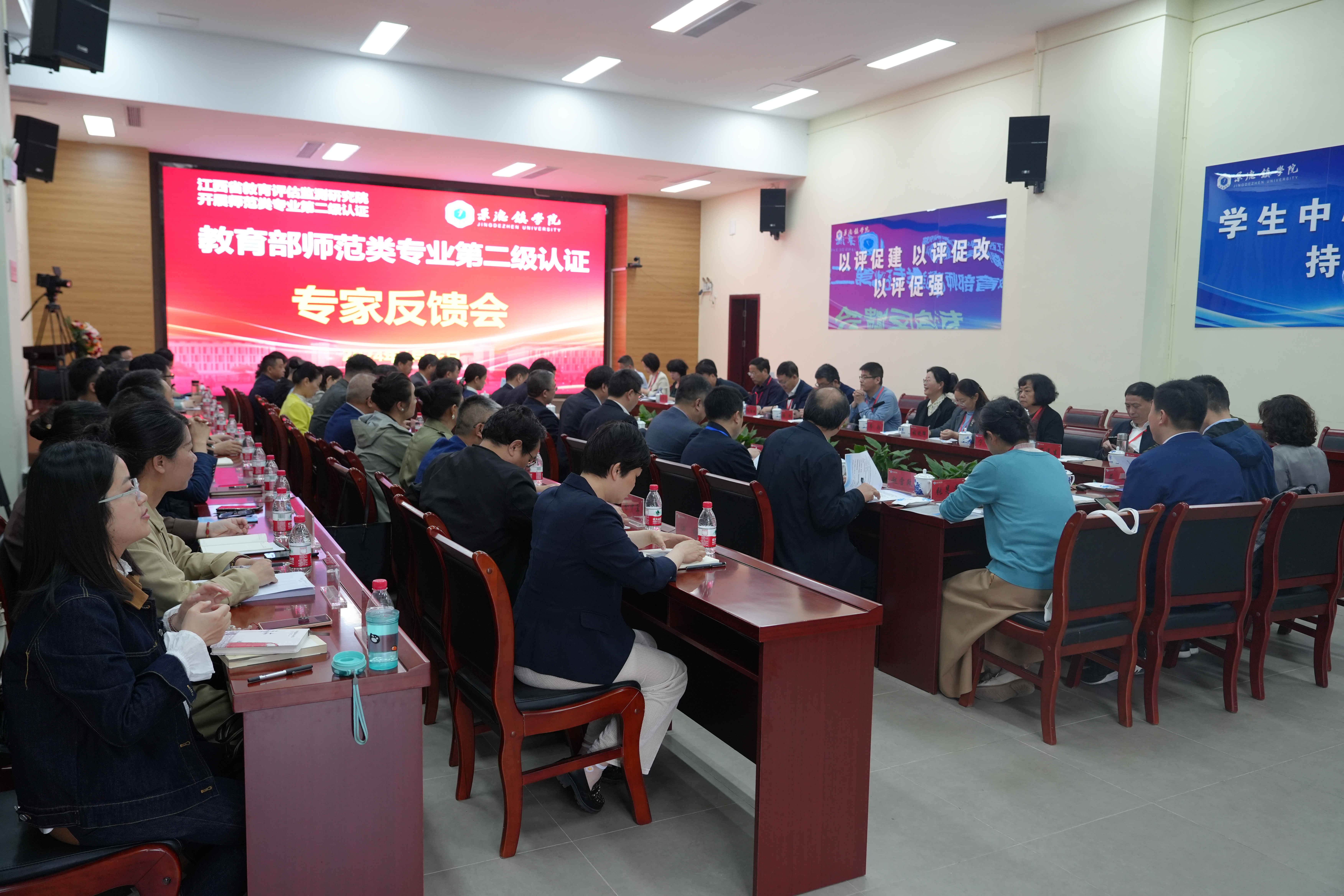 江西省教育评估监测研究院高教所所长罗运锋,省教育厅教师工作处代表胡芸,校党委书记叶观荣,党委副书记、校长陈运平,党委副书记王丽心,党委委员、副校长郑昕芾,党委委员、副校长方漫,副校长黄志坚,党委委员、副校长周清平,党委委员、纪委书记罗少韬,党委委员、组织部部长朱贺江,党委委员、宣传部部长赵雪政出席会议。学校相关职能部门负责人,参加认证专业所在学院院长、专业负责人及专业教师代表,非认证师范专业所在学院院长,思政课及教师教育类课程的教师代表参加反馈会。