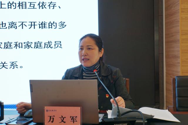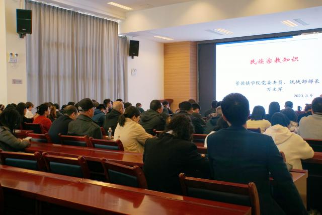 万文军从民族工作政策法规、宗教工作政策法规、当前民族宗教工作形势、高校民族宗教工作四个方面知识进行讲授。