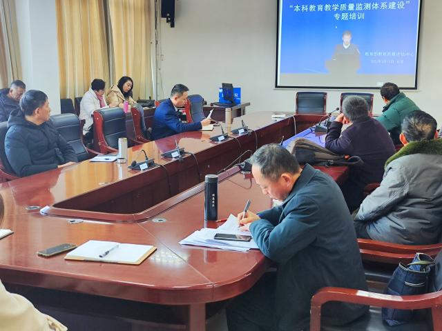 (本网讯:质评轩)为深入学习贯彻党的二十大精神,帮助高校了解全国本科教育教学质量、同类院校发展,以及本科教育教学质量监测体系建设情况,推动高等教育高质量发展,2月15日上午,我校组织教师在318会议室参加教育部教育质量评估中心召开的“本科教育教学质量监测体系建设”专题培训视频会议。