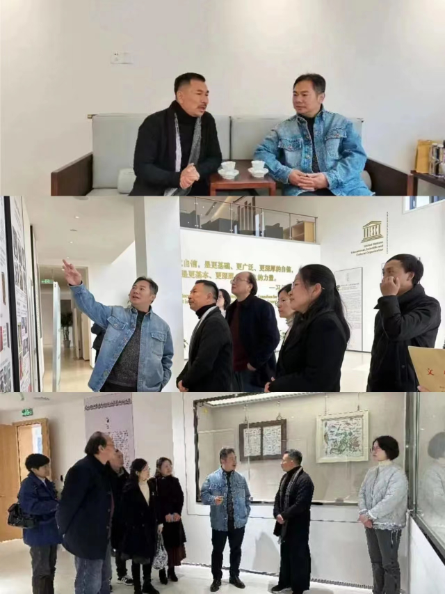 随后,孔明一行参观了美术馆、陶瓷艺术实训中心和学生作品展厅,并召开了座谈会,双方就学院发展情况、工艺美术专业的建设情况、党建工作、学生管理、创新创业等方面进行交流。