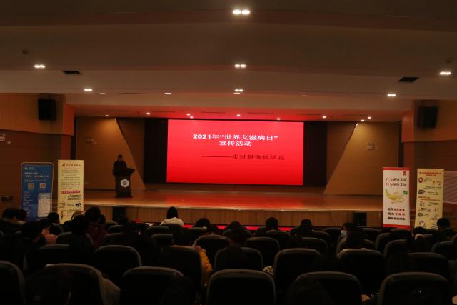 (本网讯:李玫)为进一步加强学生艾滋病预防宣传教育,12月1日下午,我校艾滋病预防知识专题讲座在图文报告厅举办。南昌彩虹健康咨询公益服务中心主任谈际震应邀授课,景德镇市疾控中心胡霞主持讲座。