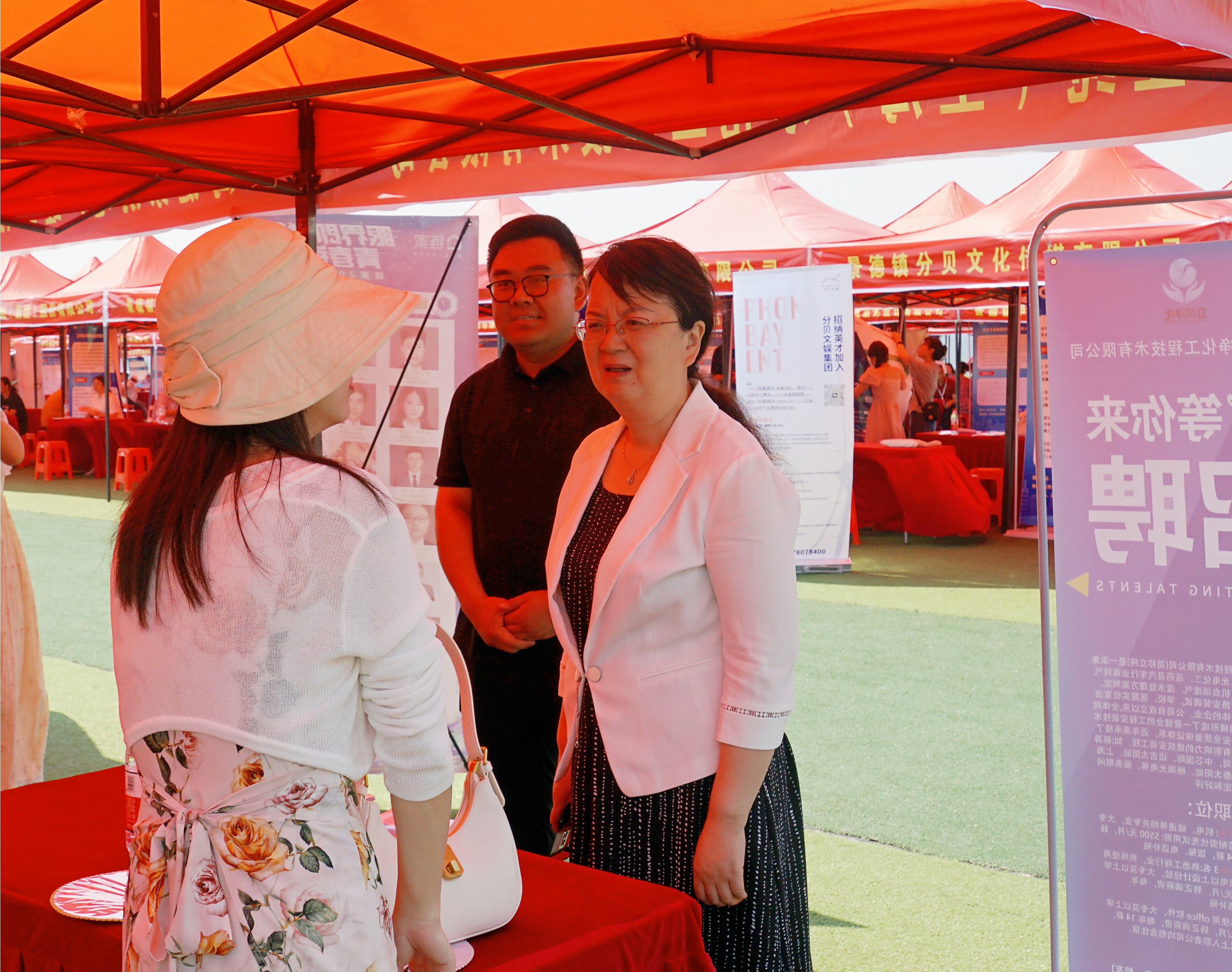 (本网讯:江珍燕)为进一步做好毕业生就业工作,搭建毕业生与用人单位双向选择平台,为毕业生提供优质的就业服务,促进我校毕业生高质量就业,5月30日,我校在田径场举行江西省就业促进周系列活动(赣东北片区)景德镇学院专场2023届毕业生双选会。校党委委员、副校长周清平来到招聘会现场,详细问询招聘需求,听取用人单位建议,深入了解各学院2023届毕业生就业情况,并与毕业生和企业招聘工作人员亲切交流。